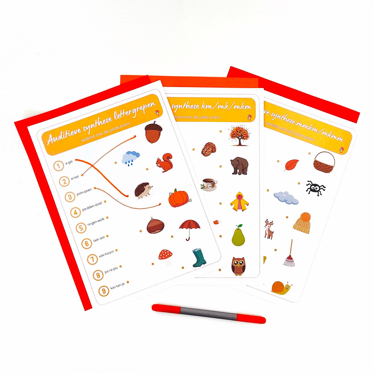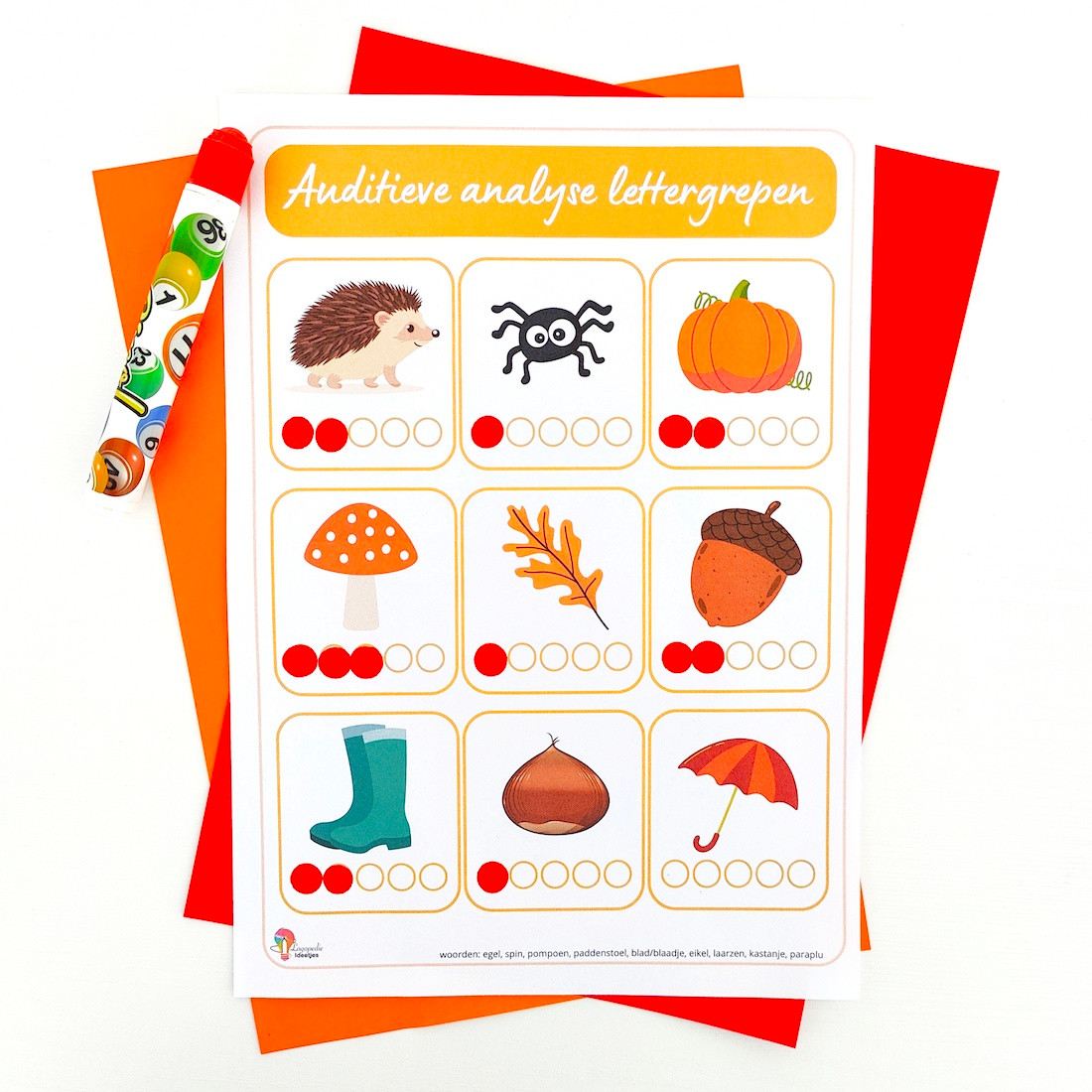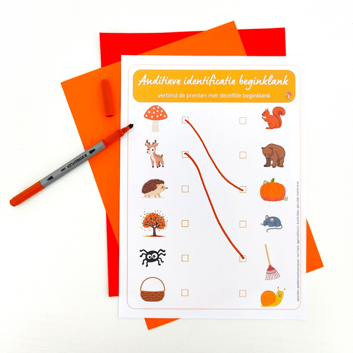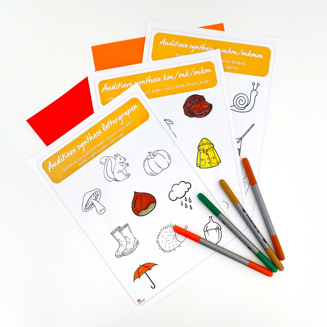 8 Gratis werkblaadjes om de auditieve vaardigheden verder in te oefenen met woorden van thema herfst.