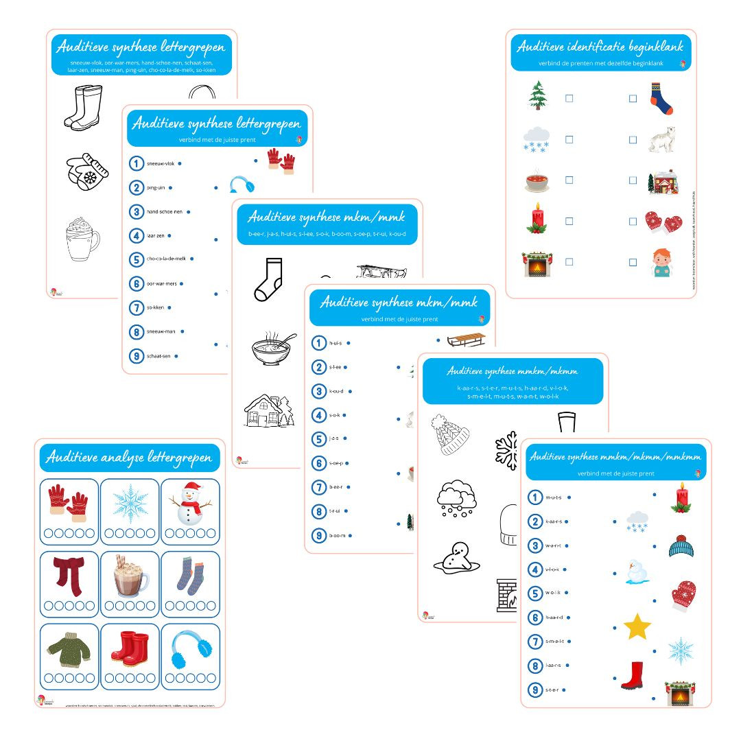 8 Gratis werkblaadjes om de auditieve vaardigheden verder in te oefenen met woorden van thema winter.