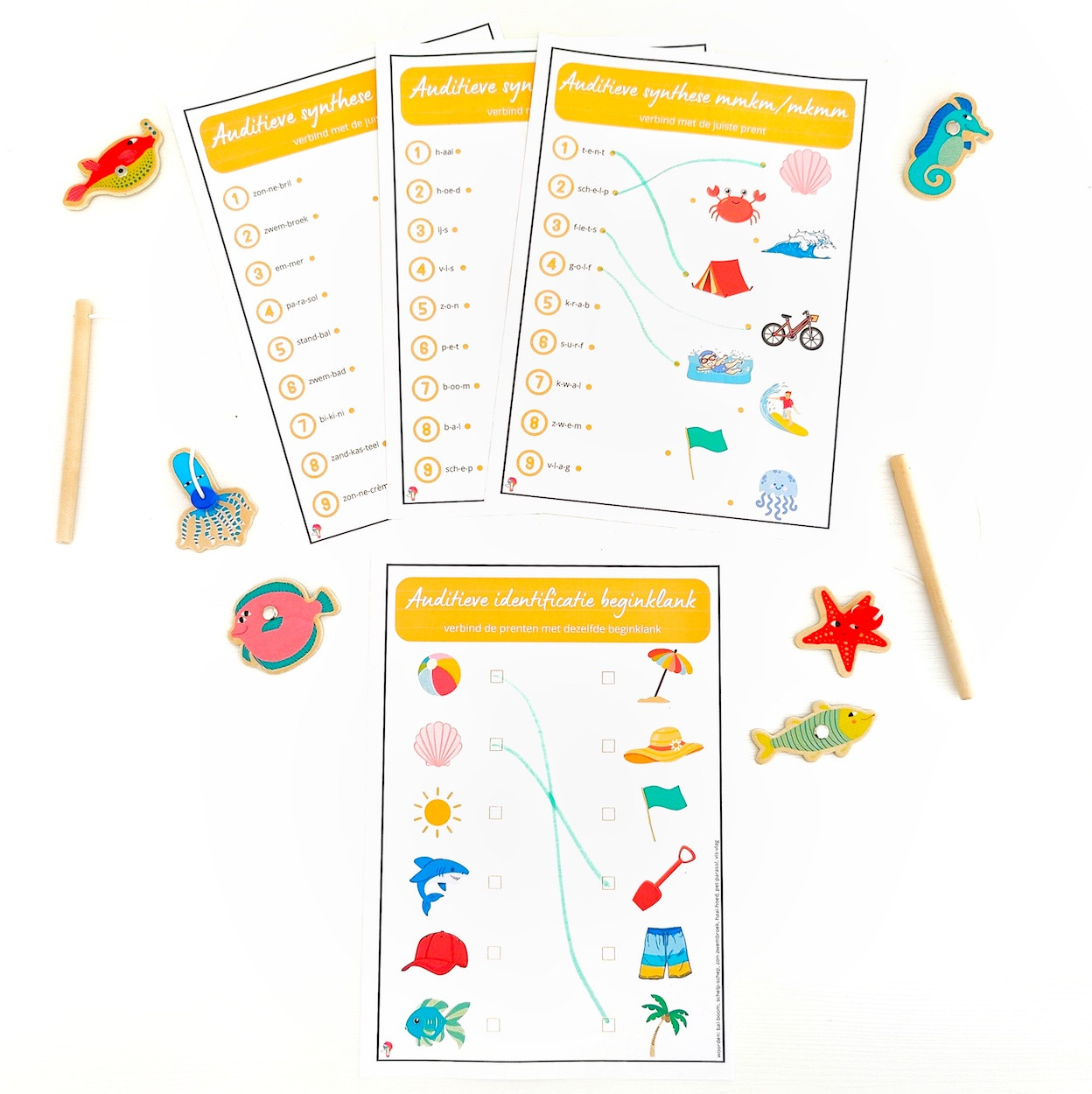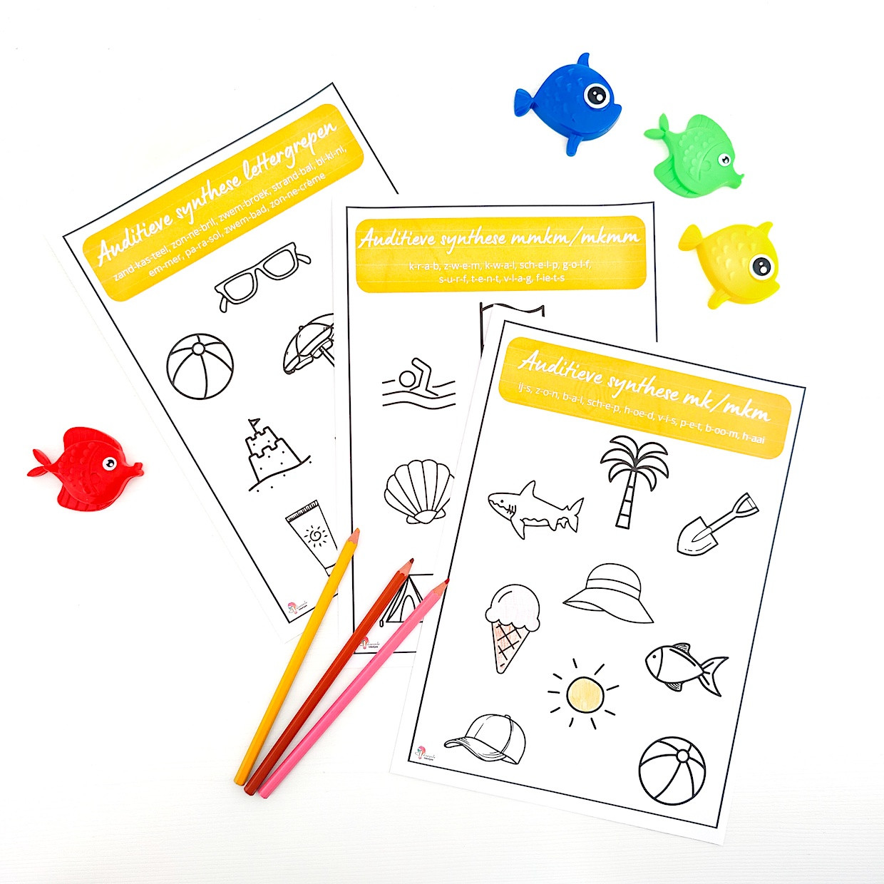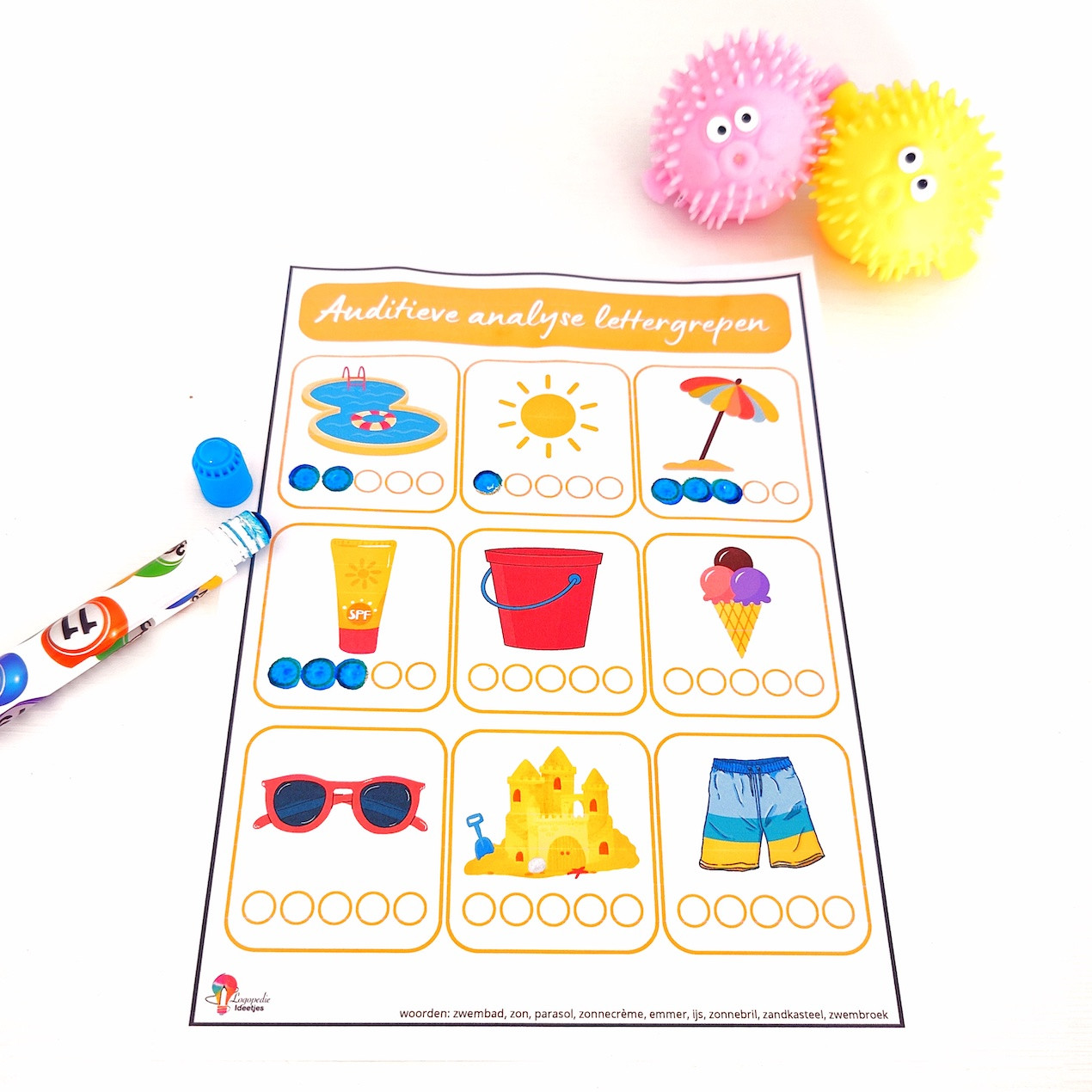 8 Gratis werkblaadjes om de auditieve vaardigheden verder in te oefenen met woorden van thema zomer.