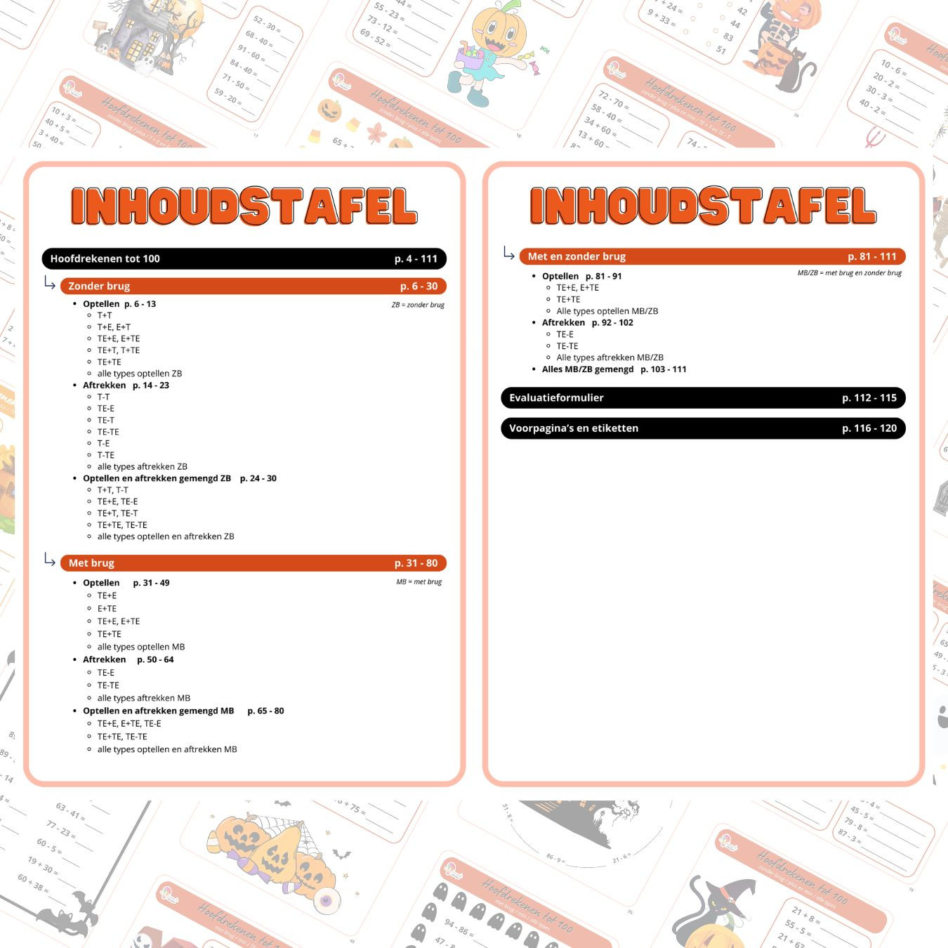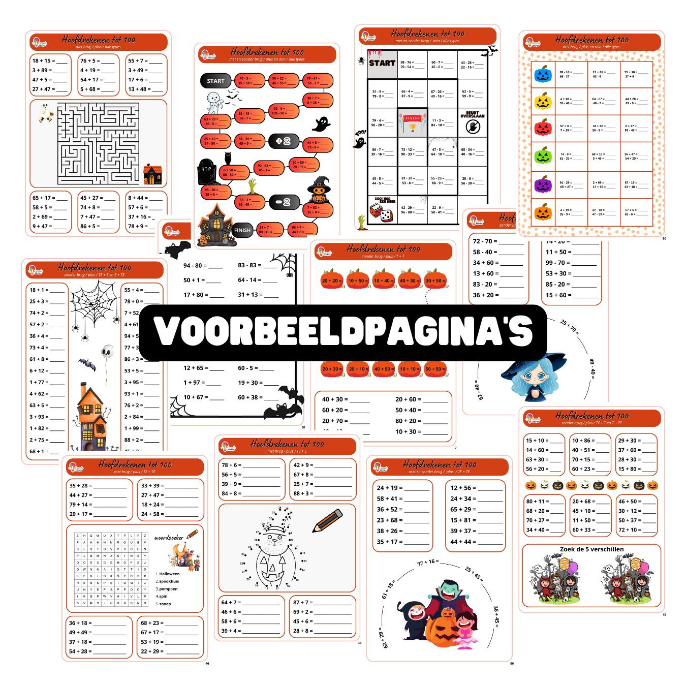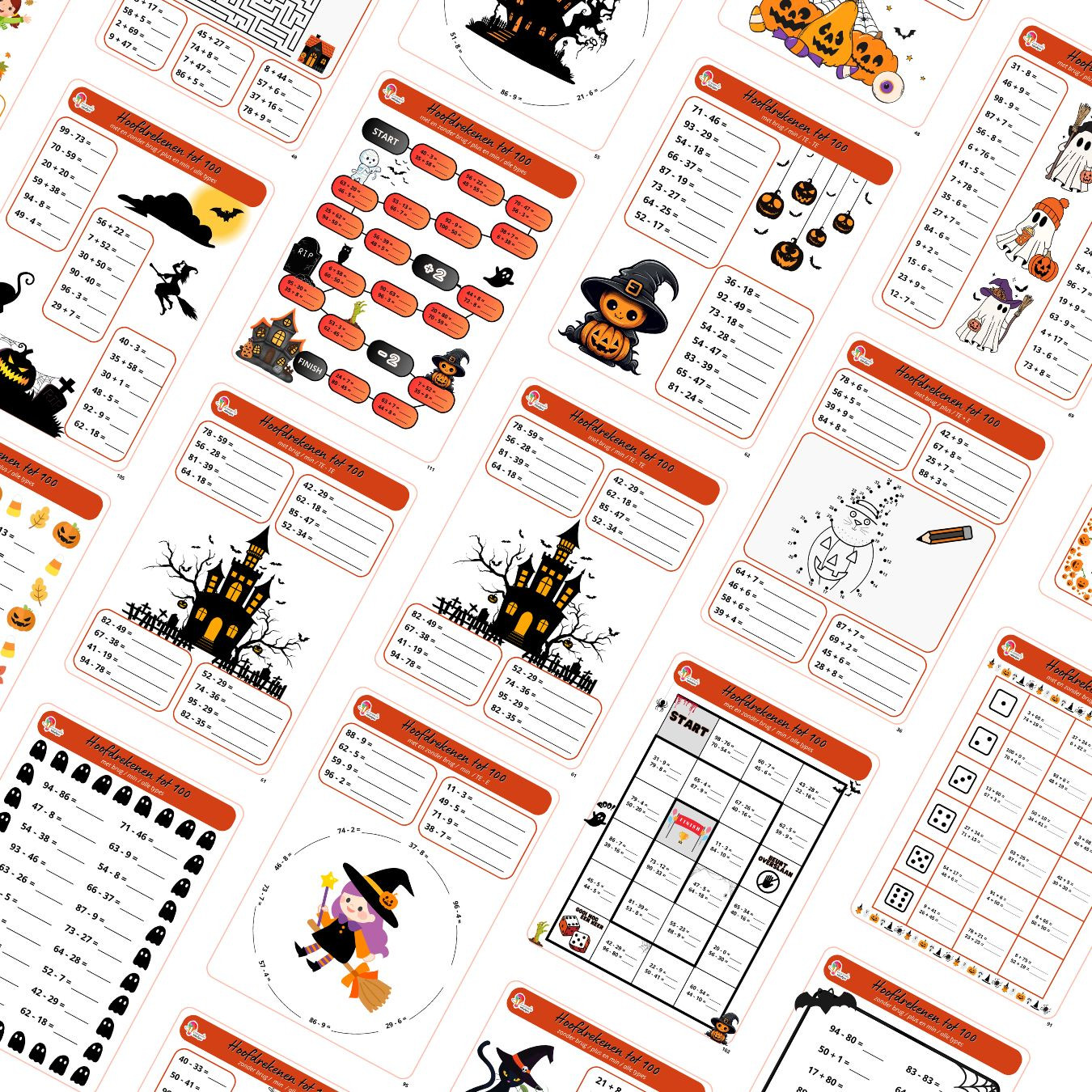 Maak optellen en aftrekken tot 100 extra griezelig met onze uitgebreide hoofdrekenbundel! Deze bundel van 120 pagina’s zit boordevol met oefenblaadjes en spelletjes om het hoofdrekenen tot 100 stapsgewijs op te bouwen, in thema Halloween.