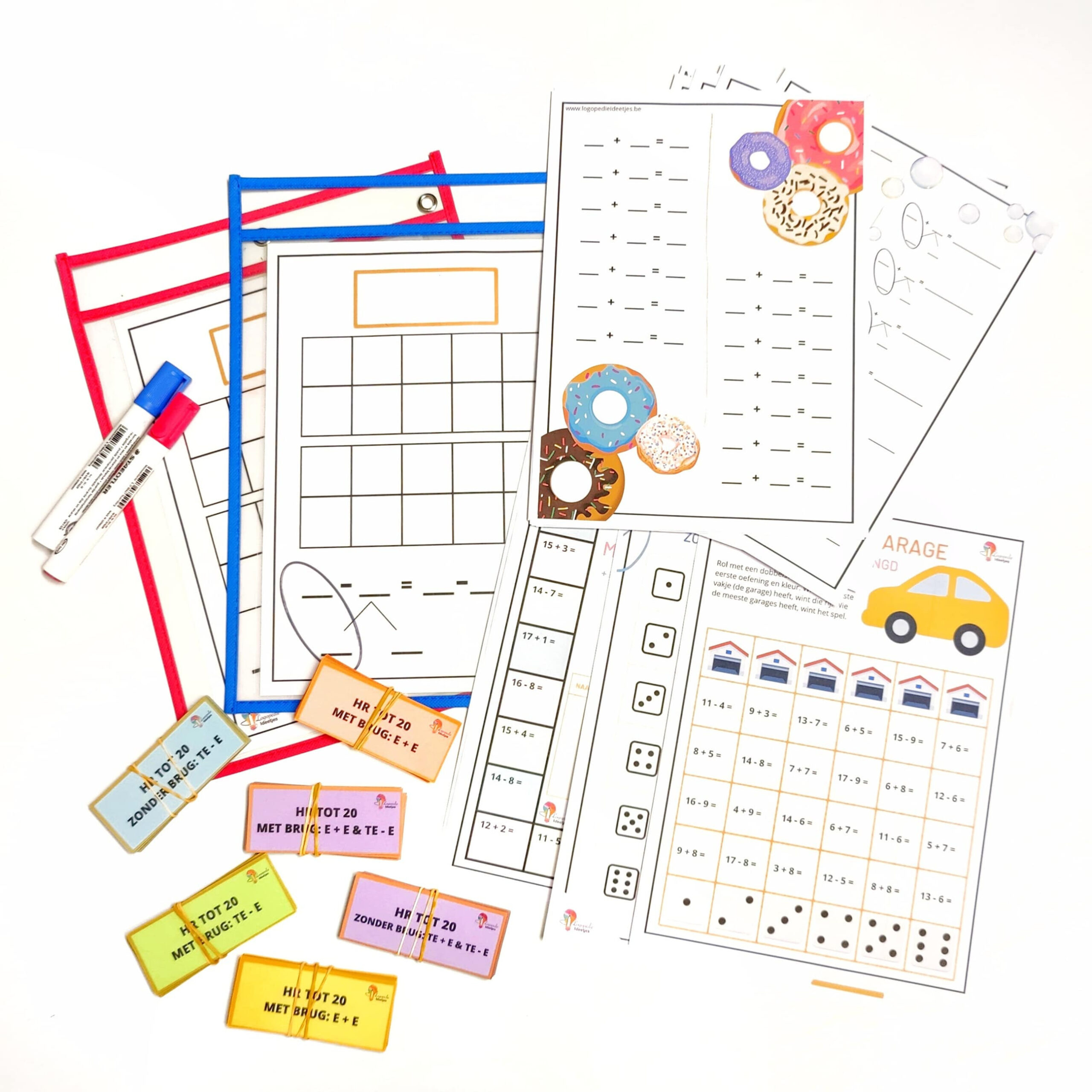 - 21 invulbladeren om de oefeningen van de oefenkaartjes in te vullen en in tussenstappen uit te werken