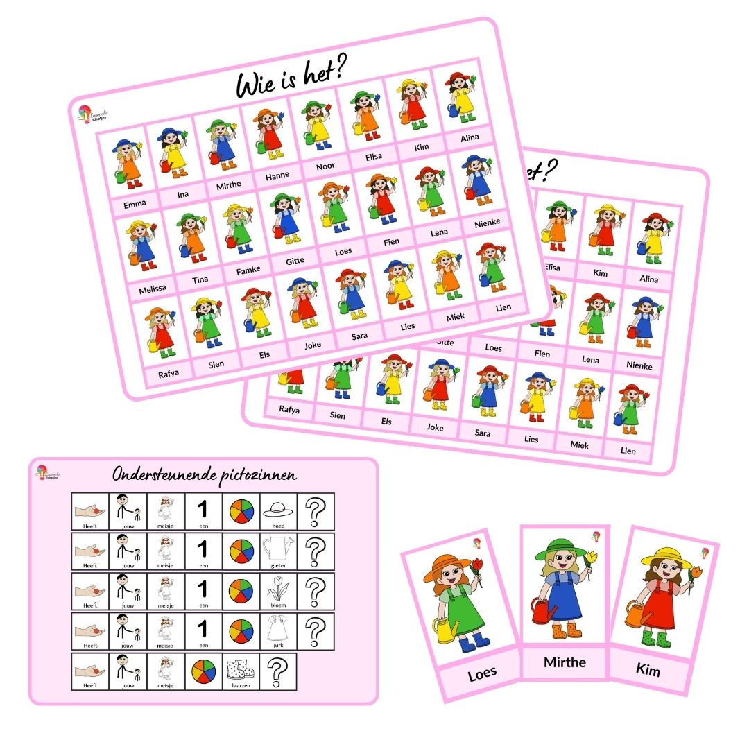De lentemeisjes Wie Is Het? is een tof spel om woordenschat, kleuren en zinsbouw te oefenen. Er zijn 24 verschillende lentemeisjes. Kan jij raden welk meisje de tegenstander heeft?
