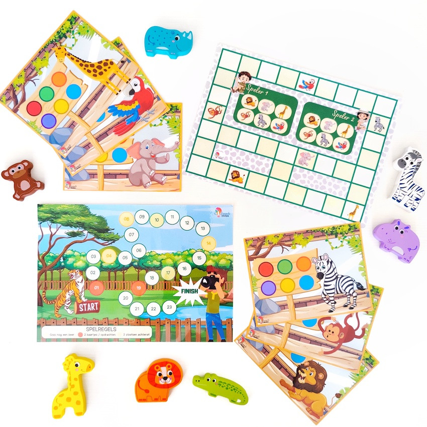 Multi-inzetbare lotto’s en 2 spelborden in thema dierentuin.