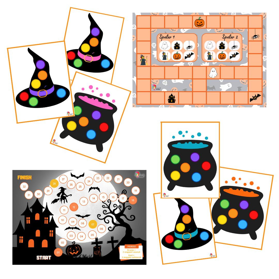 Multi-inzetbare lotto’s en 2 spelborden in thema Halloween.