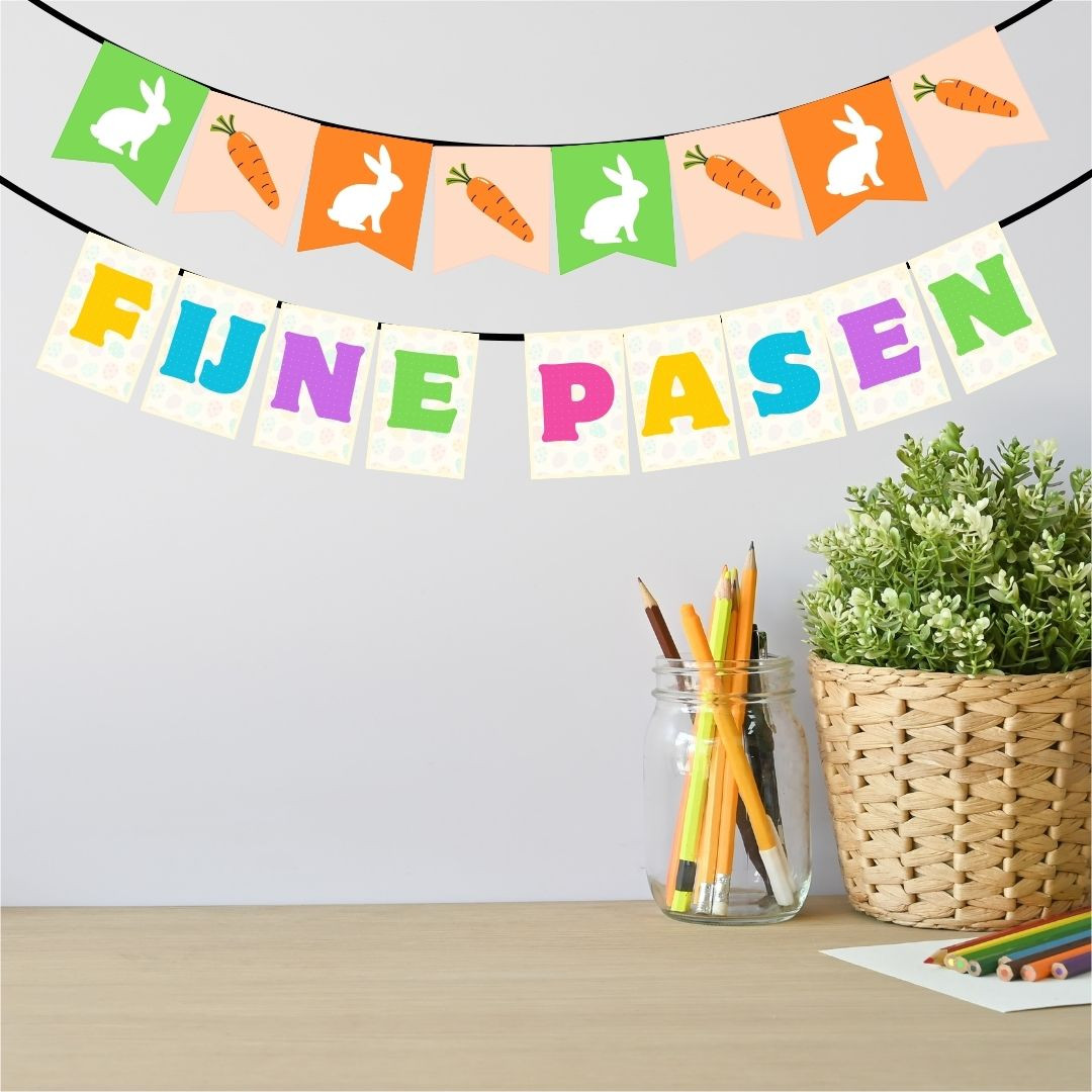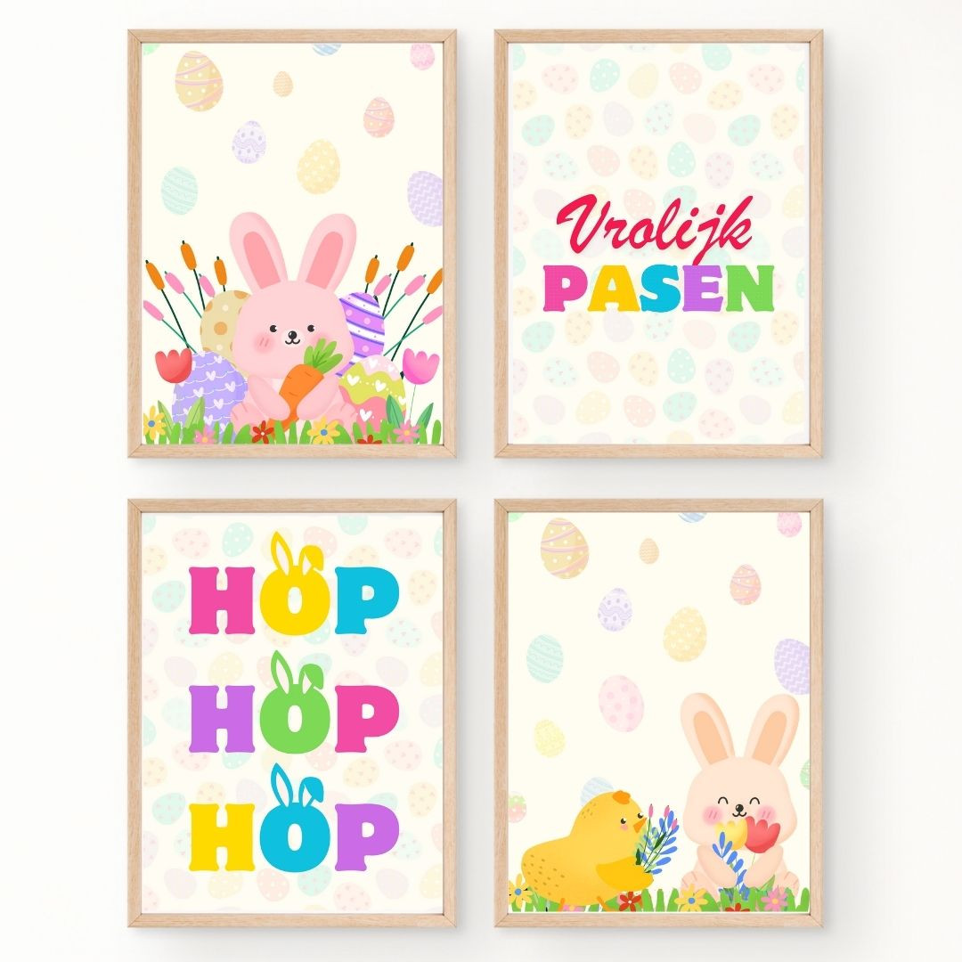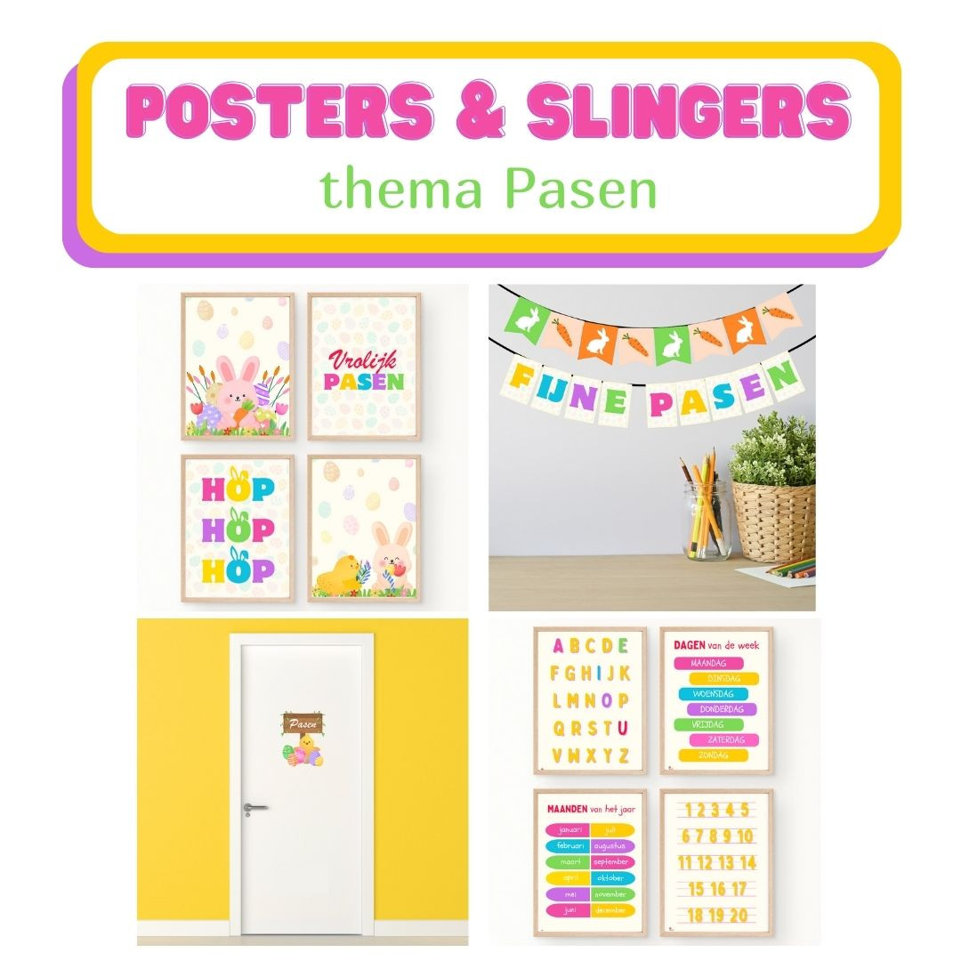 2 slingers, 1 deurdecoratie en 8 posters om je lokaal in paassfeer te brengen.