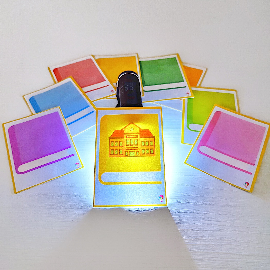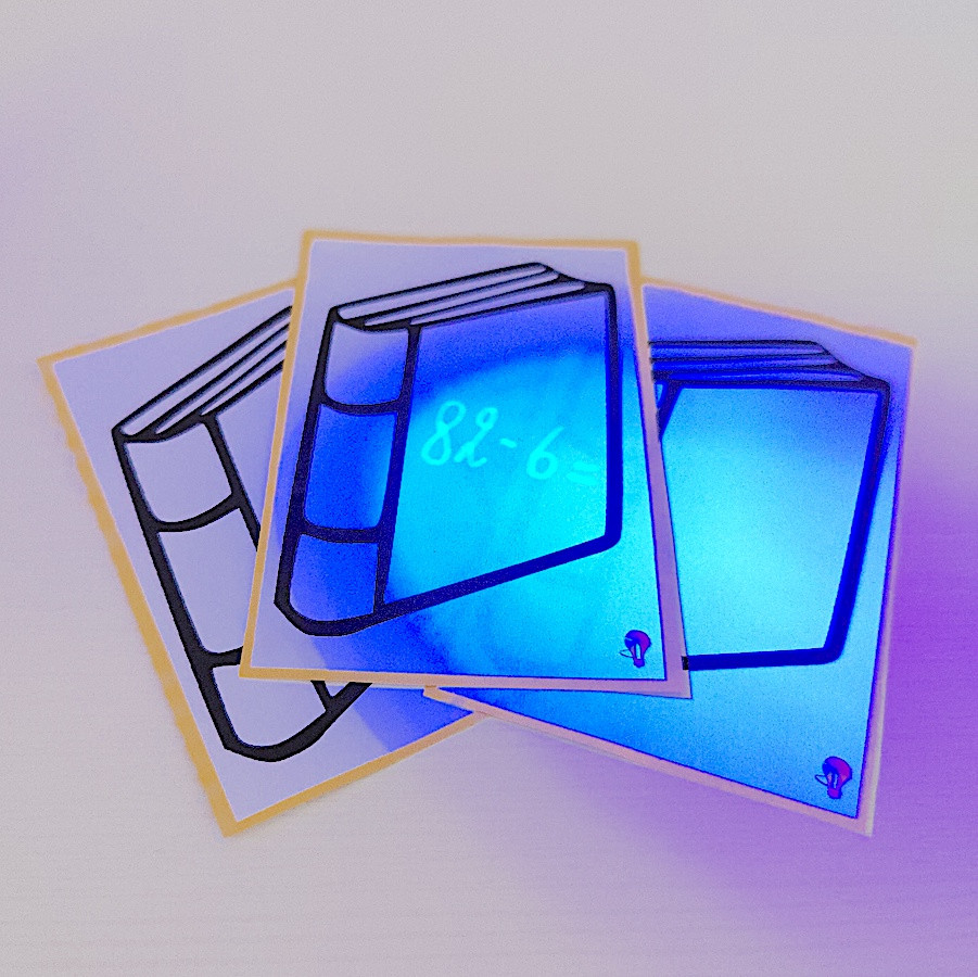 Voor thema school zijn er de verrassingsboeken. Wanneer je naar de boeken kijkt, lijkt er niets in te zitten. Maar door het schijnen met een lampje aan de achterkant verschijnt de verrassing.