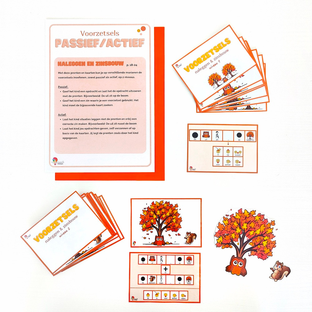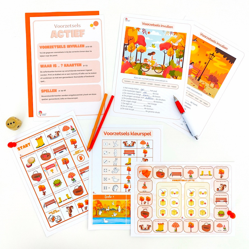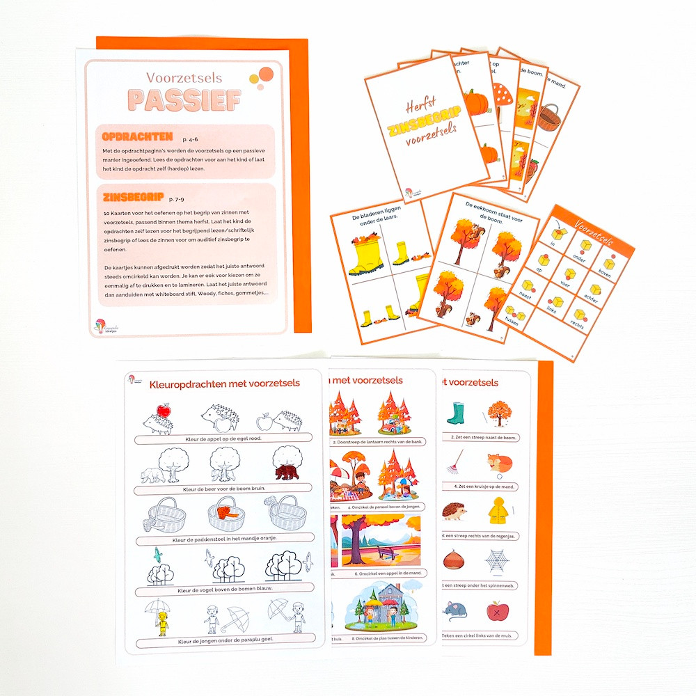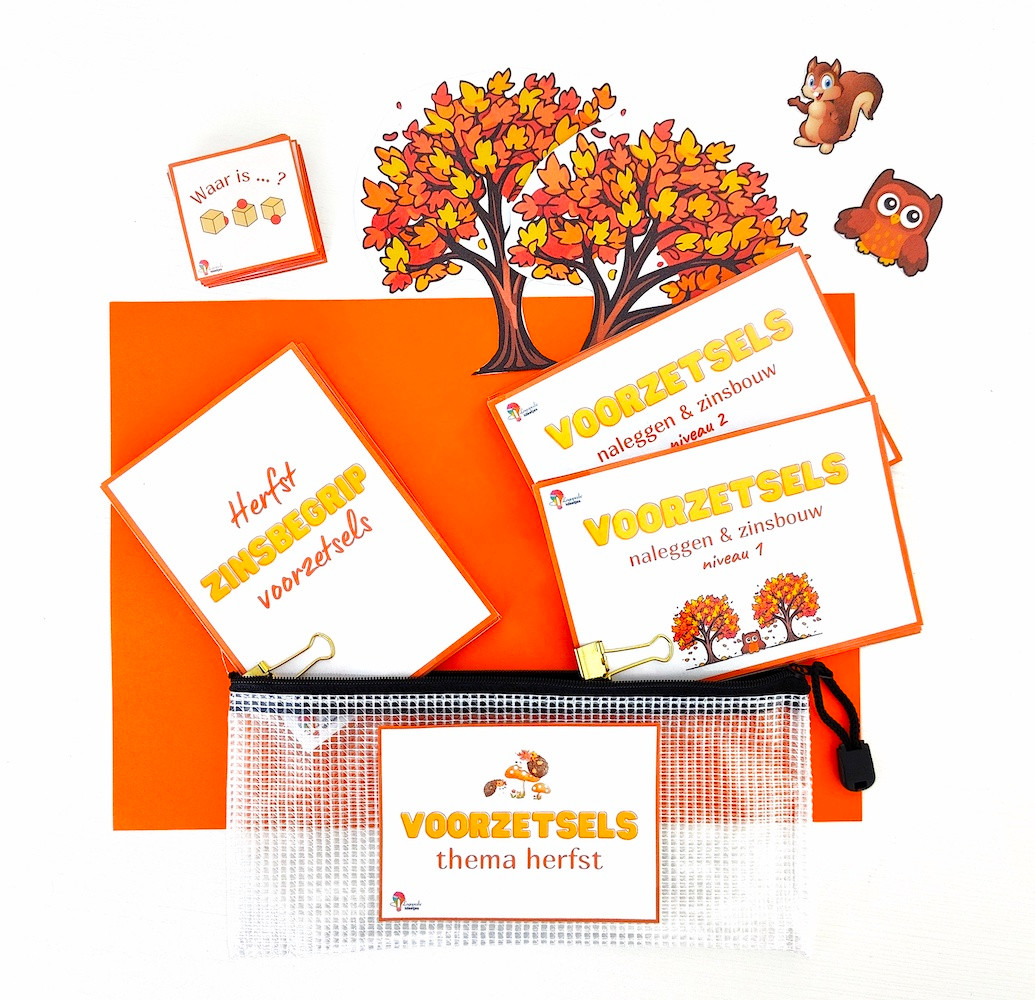 Oefen op een toffe en speelse manier de voorzetsels binnen thema herfst.