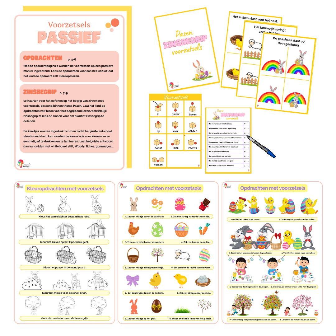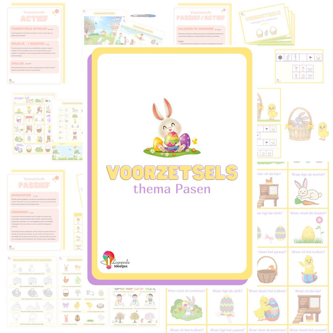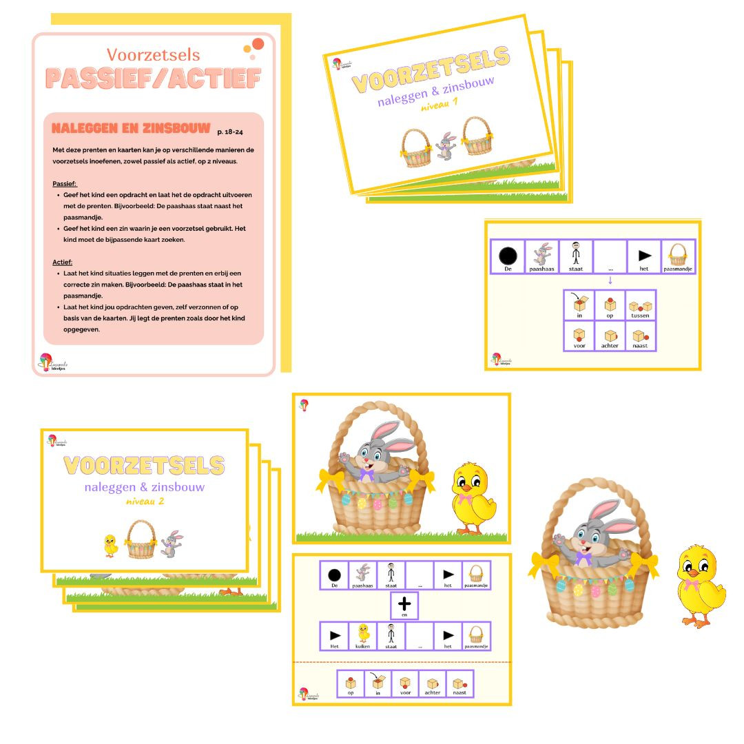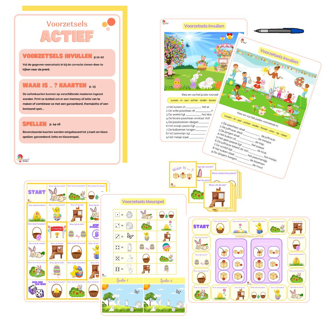 Oefen op een toffe en speelse manier de voorzetsels binnen thema Pasen.