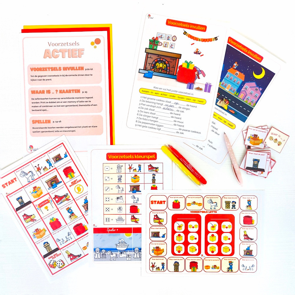 - Opdrachten volgen m.b.t. voorzetsels (3 werkblaadjes)