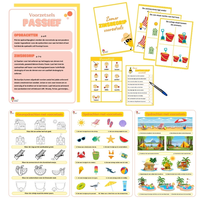 Oefen op een toffe en speelse manier de voorzetsels binnen thema zomer.