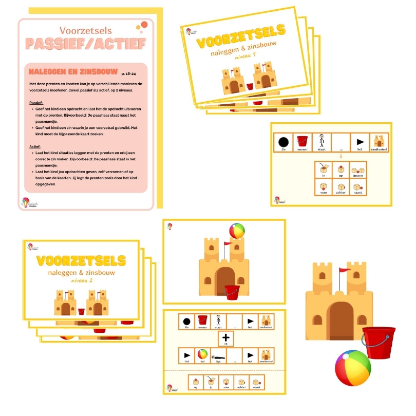 • Actief en passief: prenten en kaarten om voorzetsels passief én actief in te oefenen